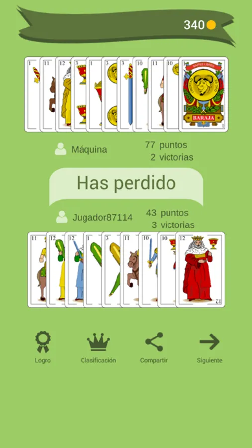- Each player gets the sum of the points obtained with the cards of the round won.