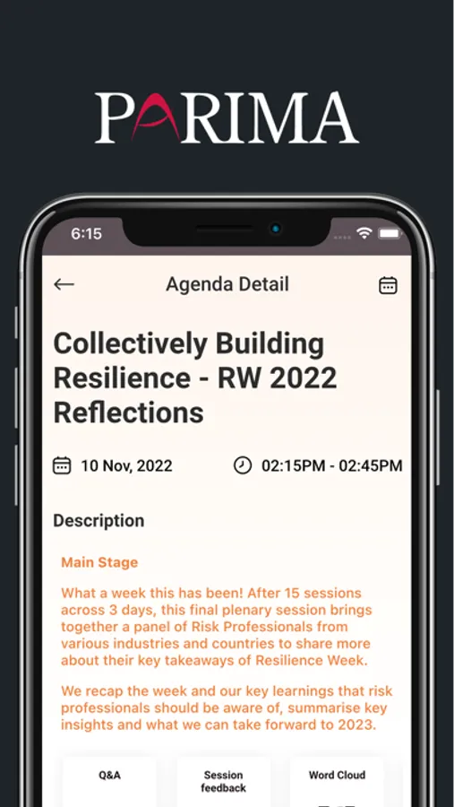 Download the app to access various functionalities and fully experience the PARIMA Resilience Week 2022 Conference: