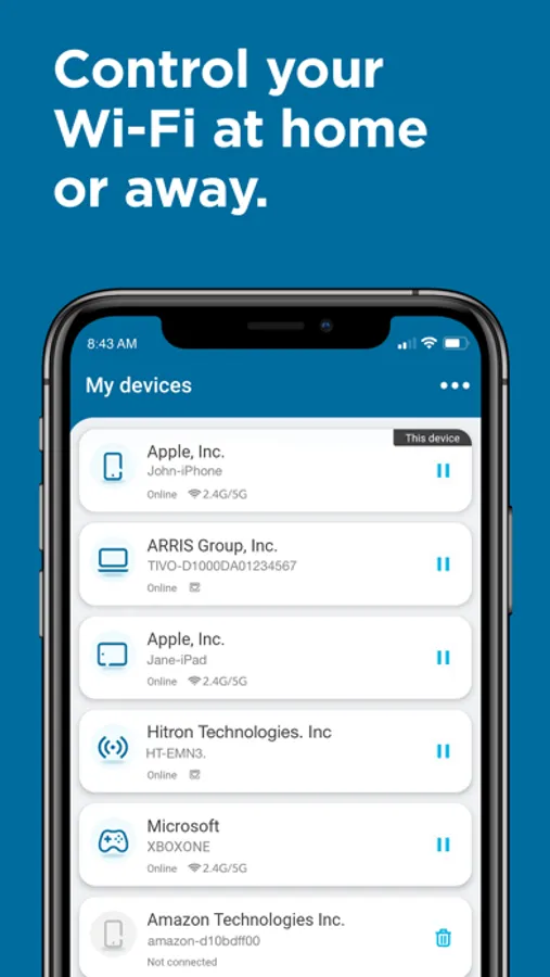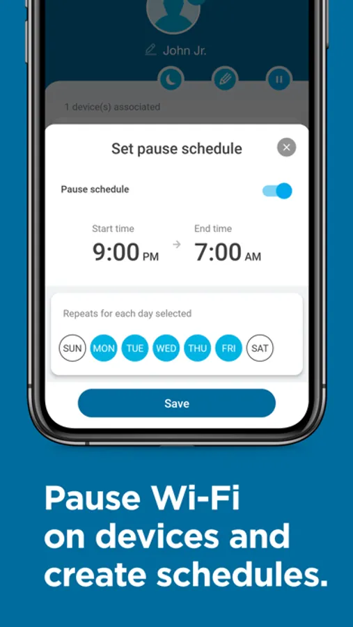 • Pause access for individuals on your network or set up pause schedules on your kids’ phones or tablets