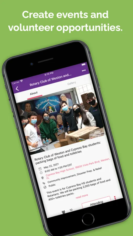 With CivicRush, you create events and receive an attendee list. You recruit people to volunteer at your event and you manage volunteers. You check-in, check-out volunteers and rate them. Volunteers will rate your event, as well. As an event lead, you can read and respond to comments, and testimonials. Event participants can share pictures of your event in the Gallery.