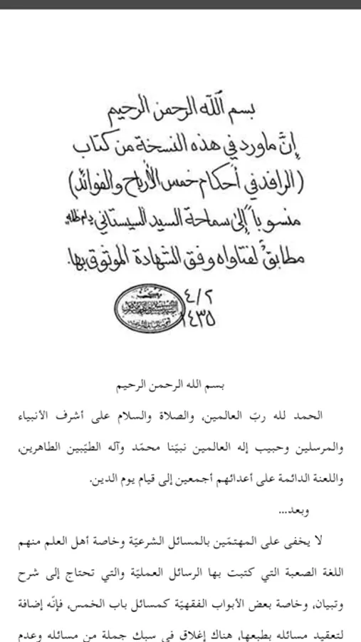 وأمّا مسألة توثيق المسائل فقد اعتمدت في الكبريات على كتاب منهاج الصالحين، وأمّا التطبيقات فهي عبارة عن استفتاءات كثيرة، وعمدتها فتاوى نجفيّة خطّيّة، وبعضها أخذتها مباشرة من مكتب آية الله العظمى السيّد علي السيستاني(مدّ ظله العالي) في النجـف الأشرف، كمـا تفضّل سماحة الأستاذ آية الله السيّـد منير الخبّاز (حفظه الله) بالتواصل مع مكتب السيّد في النجف الأشرف لحل جملة من الفروع التي وقعت مورد الخلاف والتأمّل.
