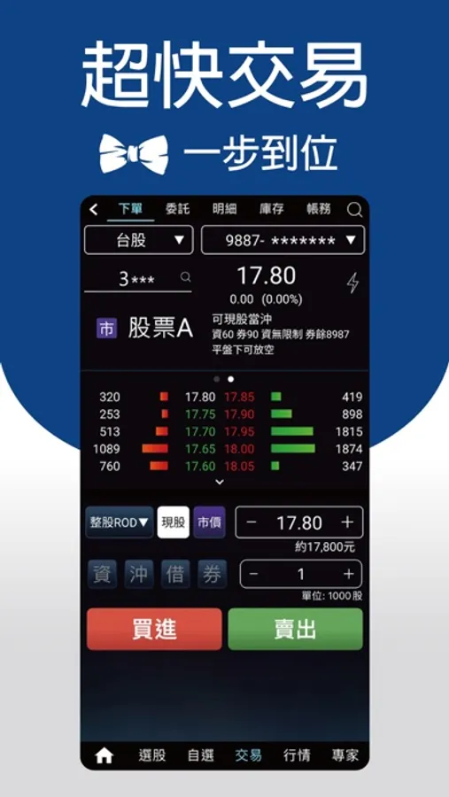 -下單頁結合五檔報價、分時走勢、即時庫存,下單就是要快、狠、準!