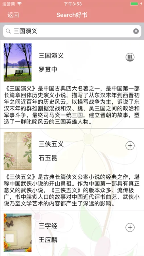 此外,本软件还可以搜索书籍、记录书签、快速切换章节,为您准备了丰富的阅读资源,热门名著,经典书籍,应有尽有: