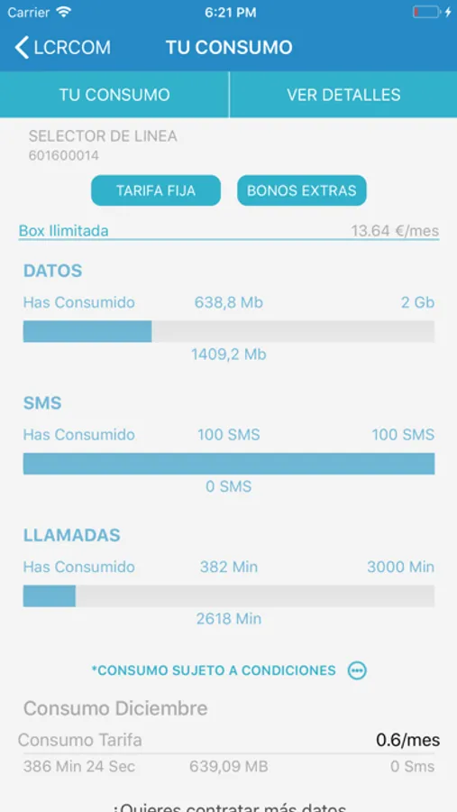 - Conocer el consumo en tiempo real, de los minutos, datos y SMSs disfrutados. Saber cuánto llevas gastados de los bonos de minutos o datos contratados en tu tarifa.
