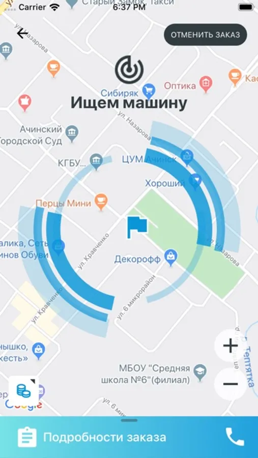 - Указывайте на карте точку подачи такси и программа сама определит Ваше местоположение;