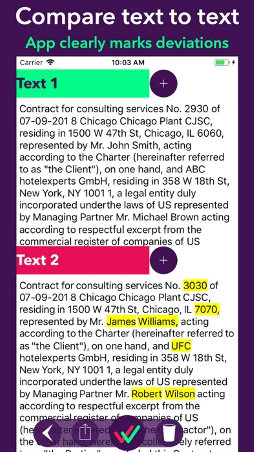 The Contract compares text to the original manuscript and clearly marks deviations, helping you improve quality, save time and avoid recalls. The Contract drastically reduces the time spent on proofreading.