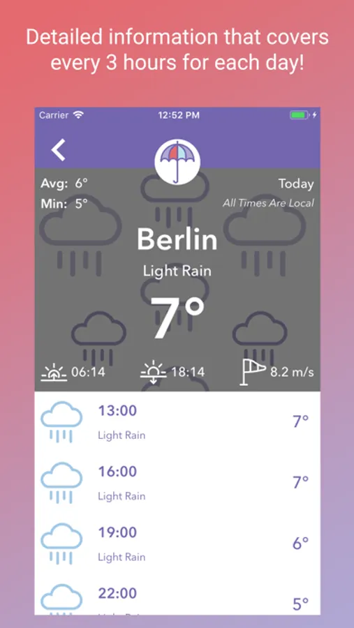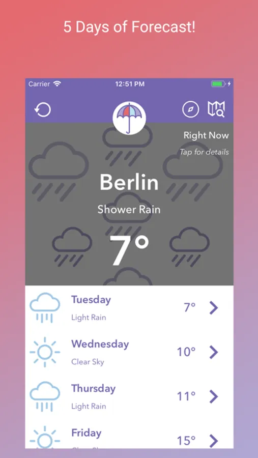 Don't forget an umbrella when you need one! Don't forget a sunglasses when the sun is shining! Make it your daily routine to check the EasyForecast and good mood will be with you Easily!
