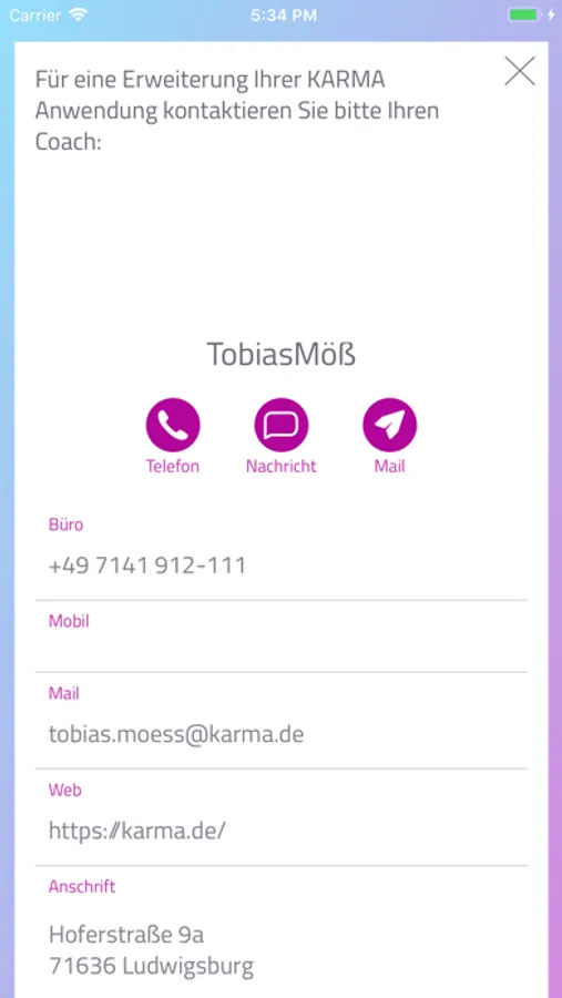 - Leistungssteigerung durch persönlichen KARMA-Coach, dem »Personal Trainer«
