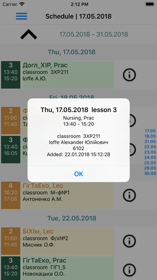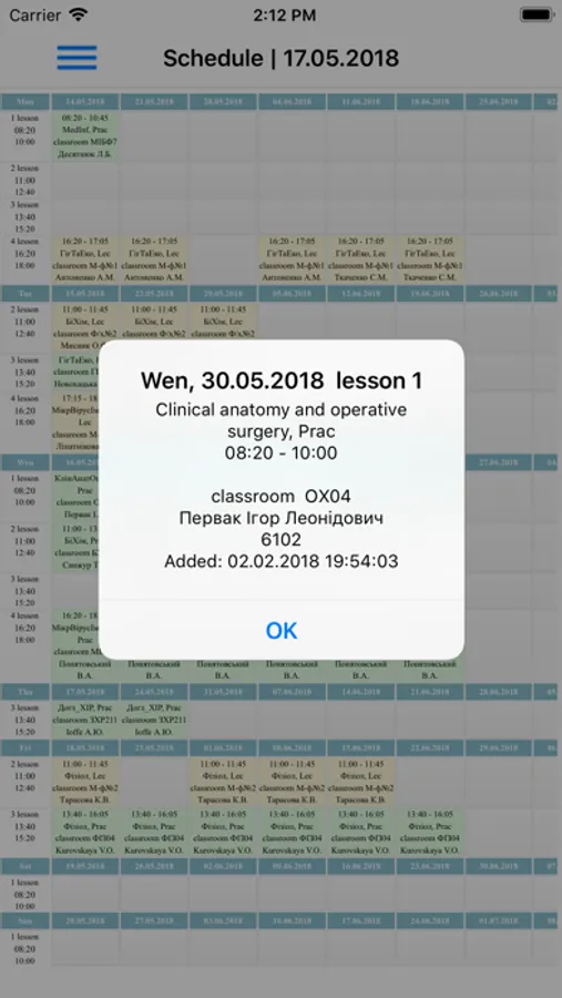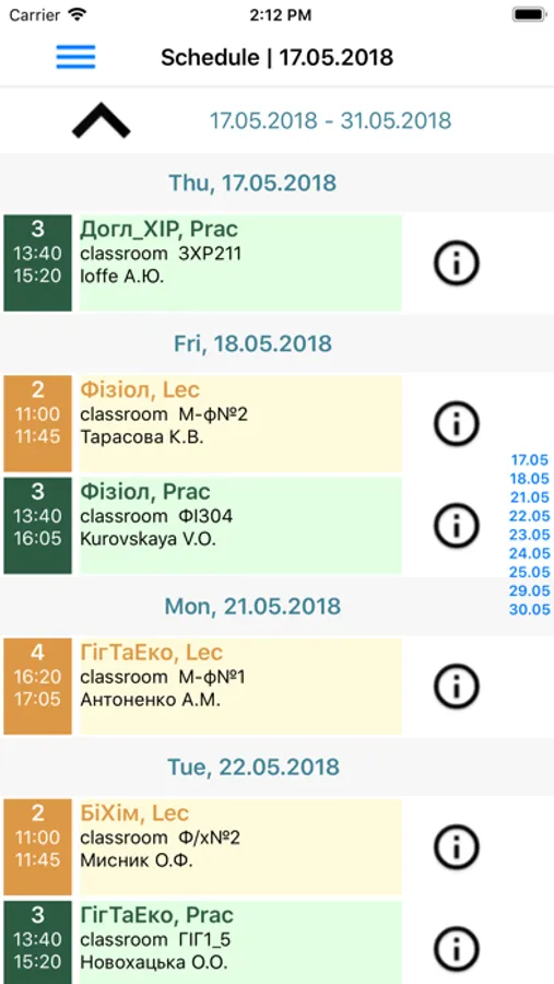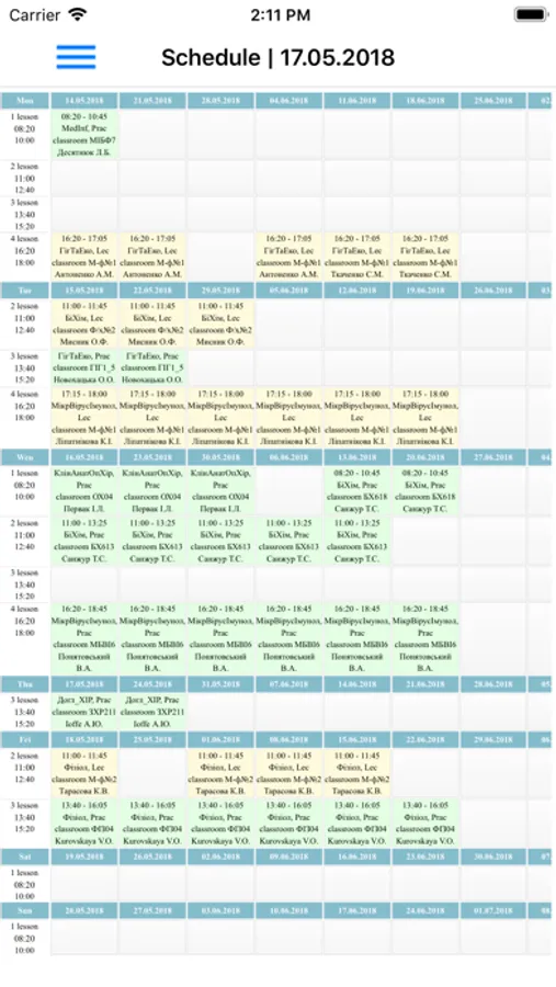 The application works online, i.e. all changes in the schedule are immediately displayed in the application. The function of saving the personal and the last open schedule is implemented in the app (if the Internet is not available, the schedule will be still displayed).