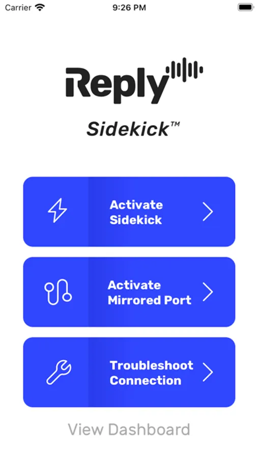 Mobile app for the Reply Sidekick, a game changing IoT device that tests as an IP Phone, offers proactive alerts and up to the minute reporting about site availability, phone registration, call quality, and firewall compliance, all in the palm of your hand.