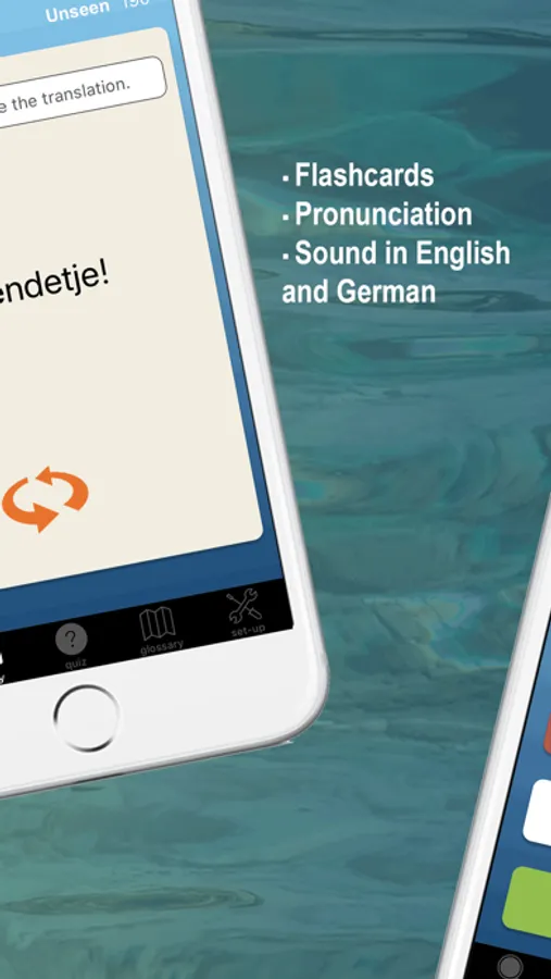 A flashcard system will help with vocabulary learning and a quiz provides a knowledge test.