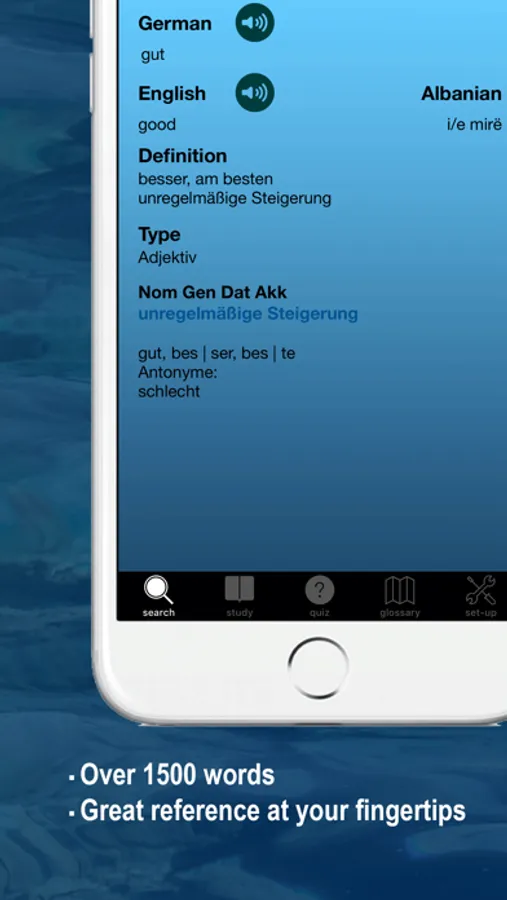 The app for Learn German from Albanian, contains over 1500 German words for the Albanian learner with excellent audio quality. It will help to develop an A1 level German vocabulary.