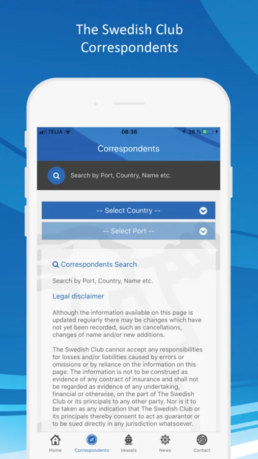 The Swedish Club has approved Correspondents always at your service worldwide. You can quickly search for Correspondents by Port, Name, Company, Country, etc.