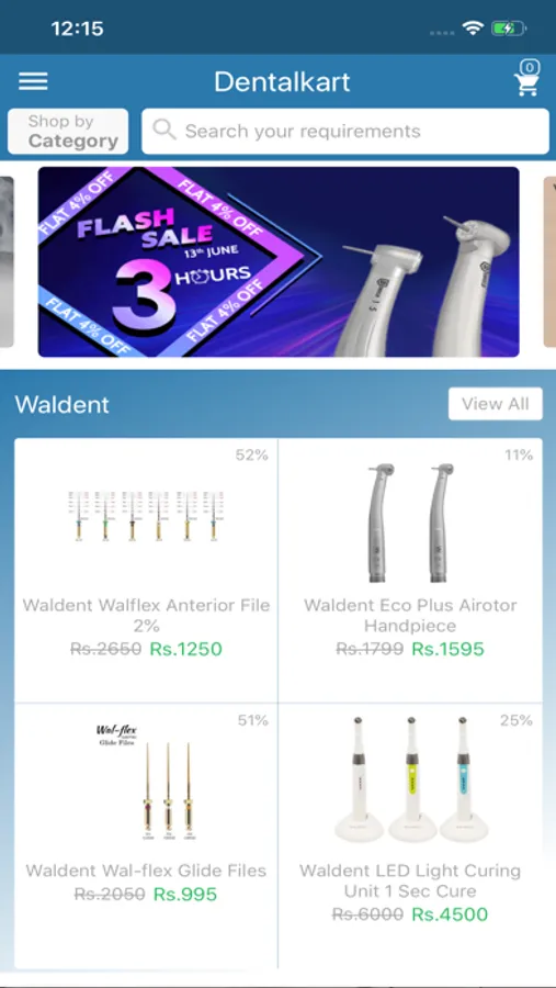 Download App on your device. Now you will be shown homepage screen where you will find all Dental categories including Amazing offers, deals and discounts under Offer Zone, Endodontics, Orthodontics, Prosthodontics, General Dentistry, Equipments, Oral Surgery, Periodontics, Paedodontics and implantology.