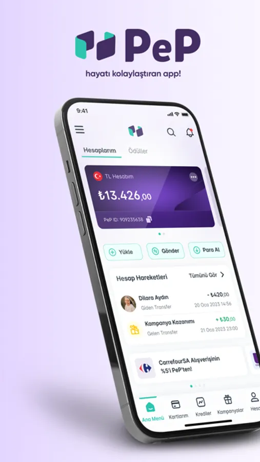 Artık şubeye gitmek veya kişisel bilgilerinizi paylaşmak zorunda değilsiniz. PeP ile finansal özgürlüğün keyfini çıkarın!