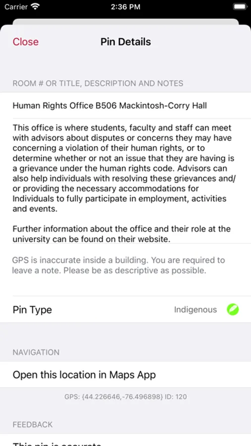 The Queen's Equity Locator offers maps of all three Queen's University campuses, with crowd sourced Equity–related points of interest. Hide the pin types you're not interested in, up or down vote the pins put in by others, or put in pins yourself.