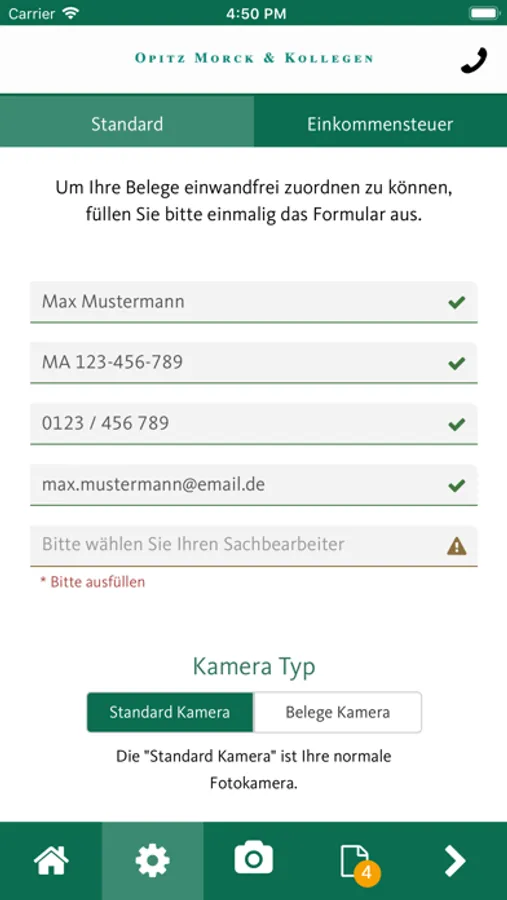 Mithilfe dieser App können Belege, Dokumente und andere Schriftstücke schnell, sicher und komfortabel an Opitz Morck & Kollegen Steuerberatungsgesellschaft mbH senden.