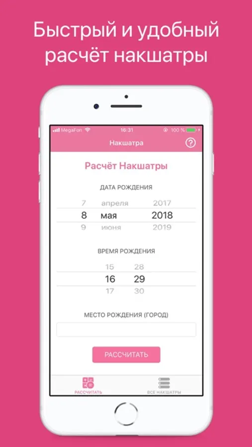 Выберите дату рождения, на которую вам нужно найти Накшатру, а также введите точное время и место рождения для получения верного результата. Начните вводить первые буквы названия места и выберите нужный город в подсказке.