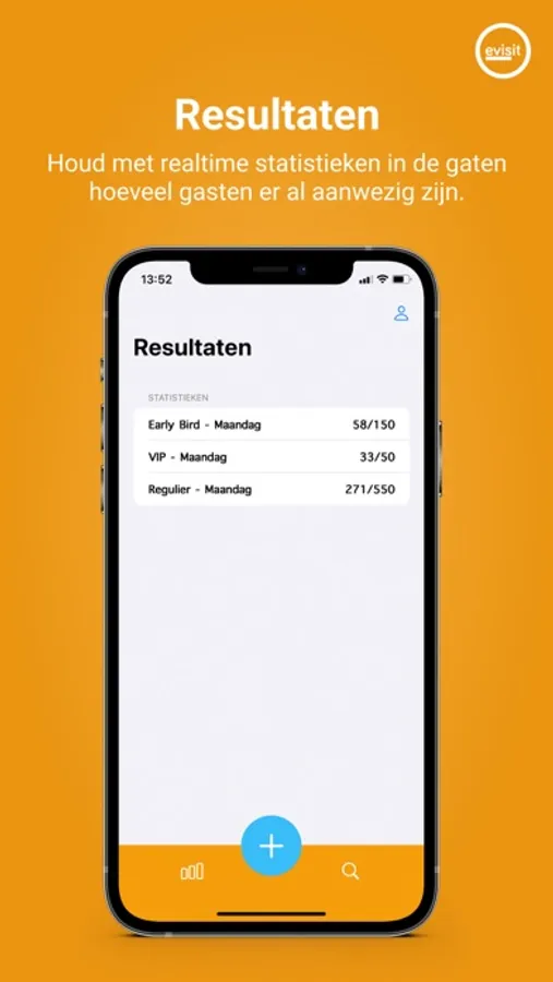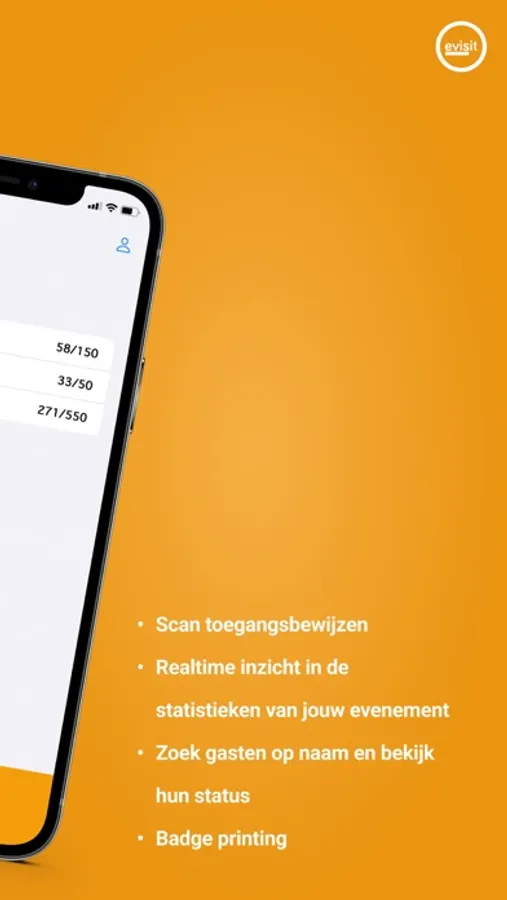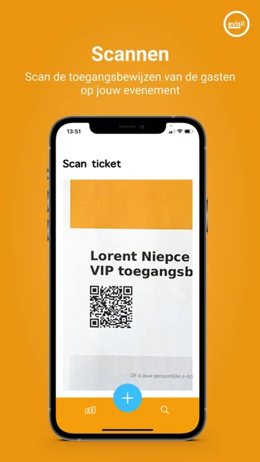 With the evisit ScanIN app, you easily scan the tickets of guests at your event. You use the app in combination with the evisit invitation management software, giving you insight into the statistics of your event at any time. Register which visitors attend quickly and securely.