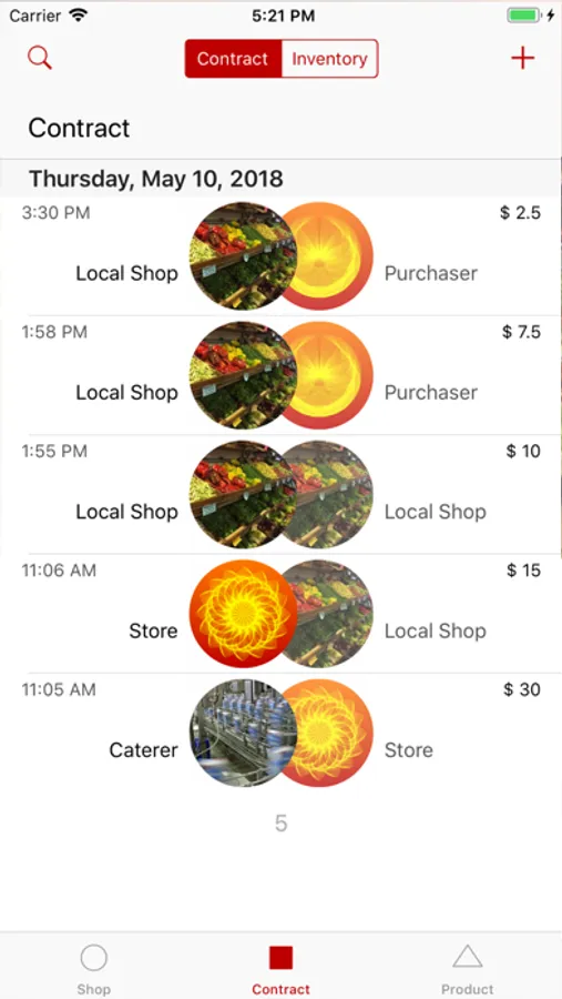 For a goods transfer contract, select one shop as the seller and another shop as the buyer.