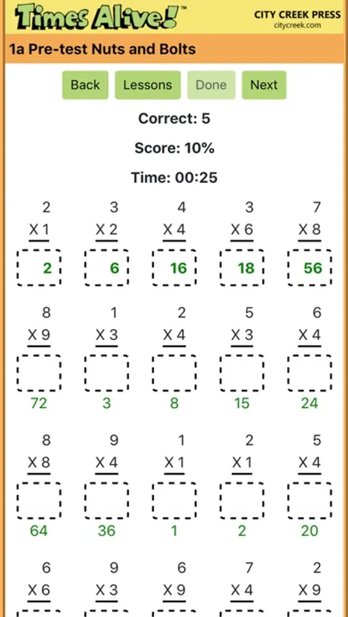 Free Times Alive Lite version includes free scorable times tables quiz plus Lessons 1-3 with in-app purchase option to teach all the times tables 0s-9s. Studies show our picture, story, and song program out performs most methods for effectiveness and retention of the multiplication facts. Times Alive includes animated cartoons, stories, songs, quizzes, and interactive games. It keeps track of student progress showing completed lessons, test scores, and time for completion. Easily clear progress to re-take a test or to start a new student. Shown helpful to boost math skills for students with dyslexia, adhd, dyscalculia, autism, and other learning differences. Times Alive is designed to make memorization easy and fun so students are eager to learn and can proceed with the times tables committed to memory, in order to solve higher math including ratios, division, and algebraic equations. Internet connection not needed after initial download. Times Alive is based on the widely used and award winning book, Times Tables the Fun Way. Provided by City Creek Press, established in 1992.