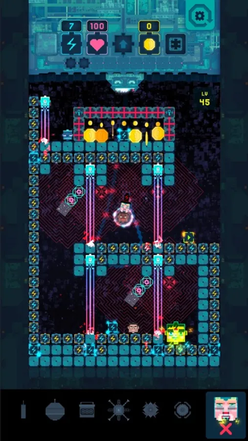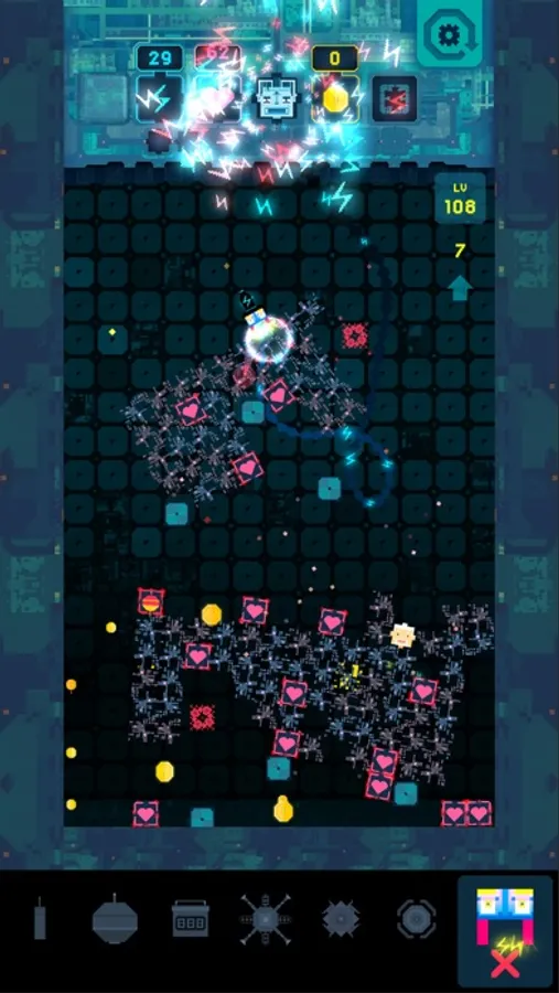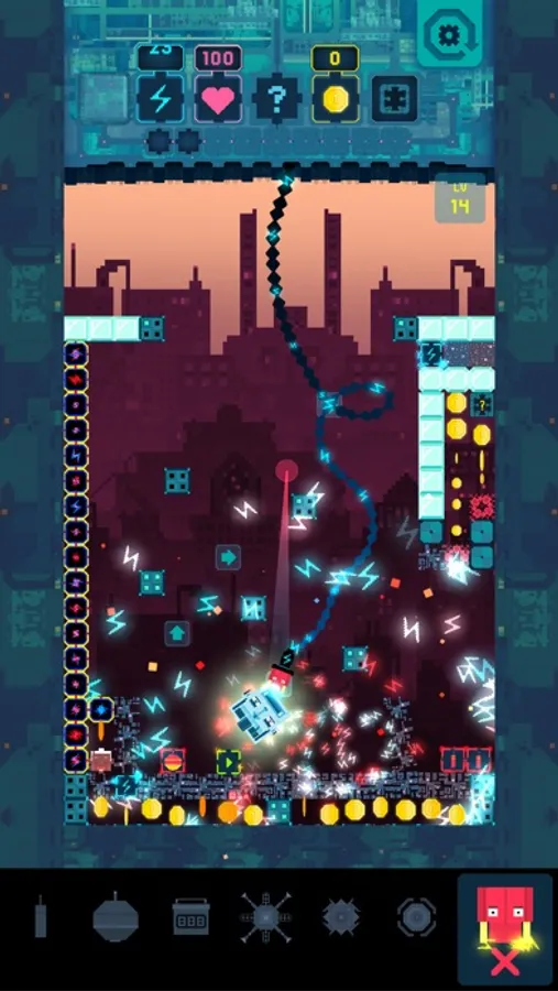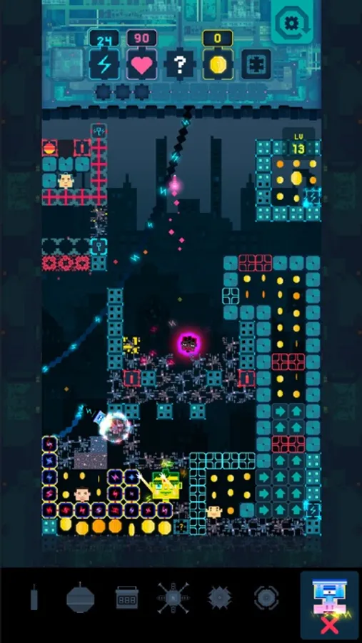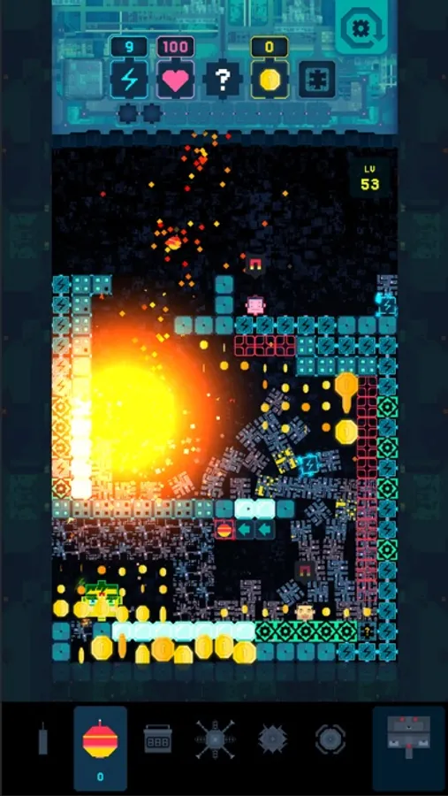 - Use the 8 different types of bombs strategically to clear your way and to avoid being overwhelmed by rising blocks.