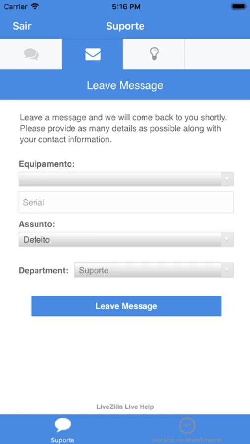 - Possui um chat que possibilita o envio de fotos e vídeos para nossa equipe especializada em te auxiliar;