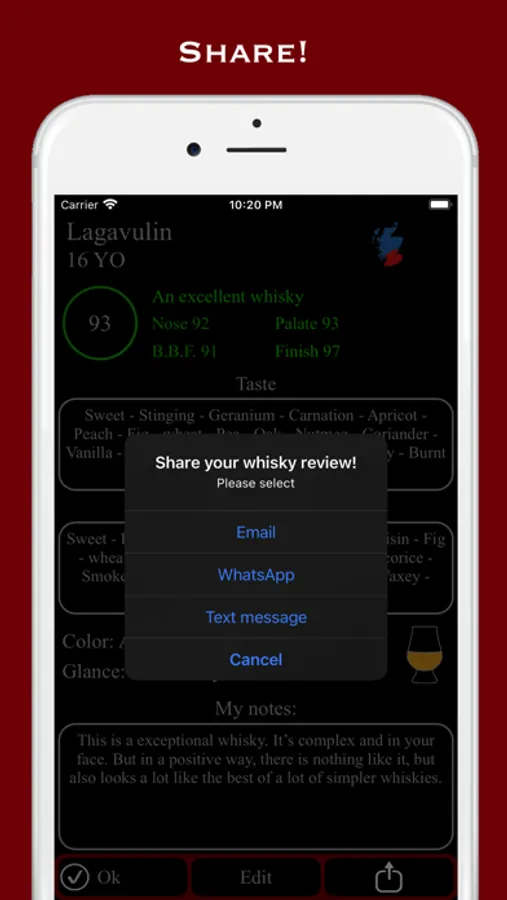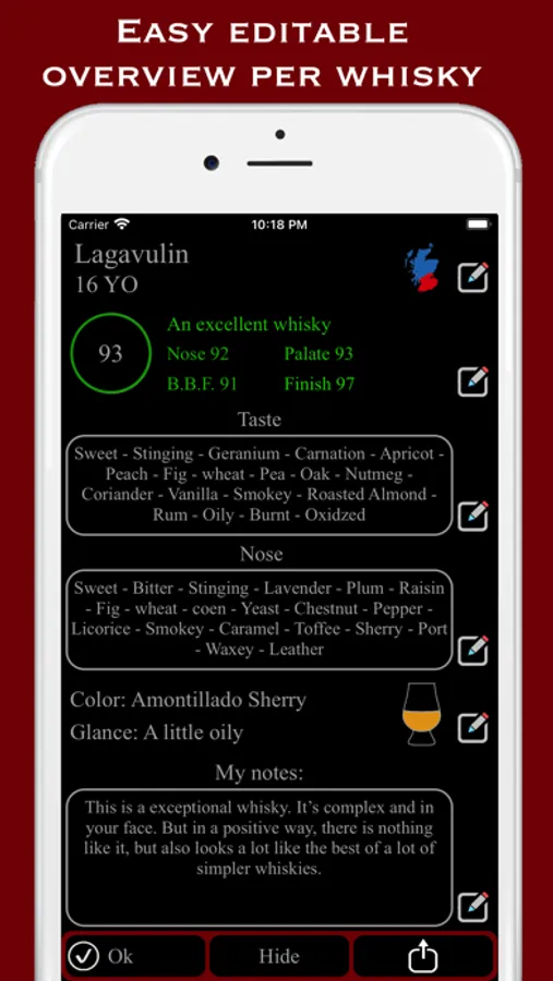 Give ratings based on Nose, Body, Balance, Feel, Palate and Finish.