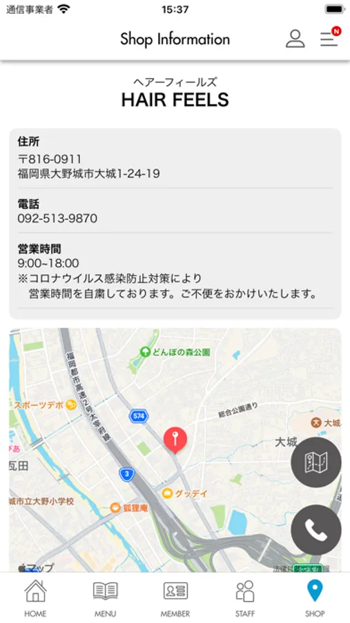 ホーム画面からボタン1つで簡単に電話予約が可能です。