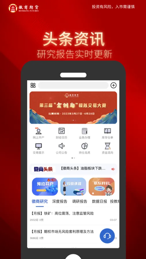 徽商期货行情交易APP,为期货投资者提供专业的期货行情、在线交易、期货开户、交易资讯等。