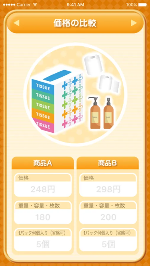 For example, you can quickly find out which is cheaper, a pack of 298 yen tissues, a pack of 180 tissues, or a pack of 5 tissues, or a pack of 249 yen tissues, a pack of 160 tissues, or a pack of 5 tissues.