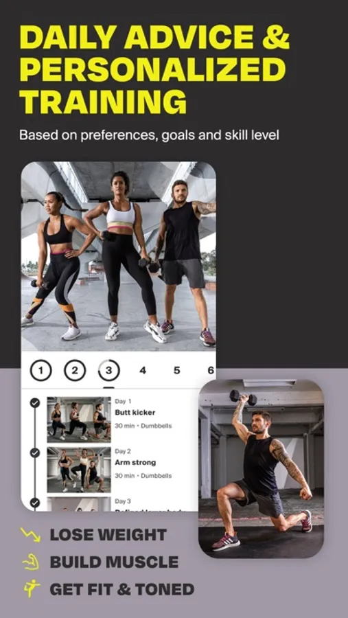 Pick a training style and get ready to sweat: strength, HIIT, muscle-building, Pilates, yoga, boxing, MMA and more. Train at home or in the gym, and access workouts that are right for you – search by equipment, time, body part or style.