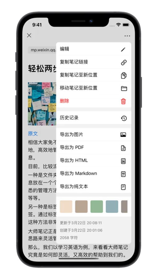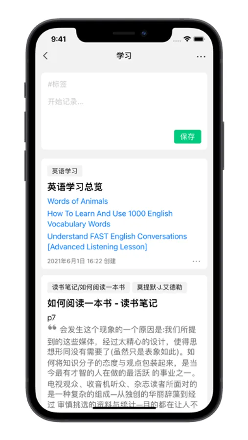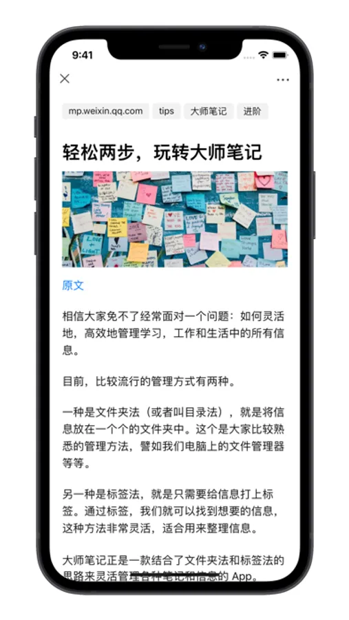 2. 大师笔记允许您使用灵活的标签,自由地组织,管理您的笔记,免去传统的,使用笔记本管理笔记带来的烦恼;