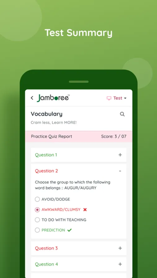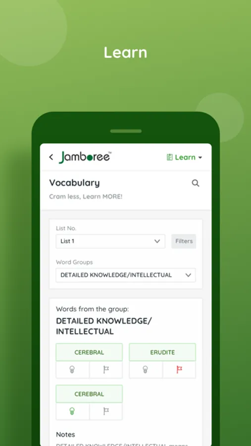 Jamboree’s unique teaching methodology simplifies GRE Vocabulary for you. You don’t have to memorize thousands of words! Learn high frequency GRE words with the aid of easy-to-remember groups and highly customized features.
