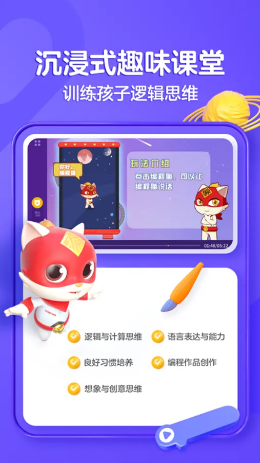 探月手机编程,是编程猫旗下的在线编程应用,手机就能学编程!探月课程将编程知识融入剧情故事,孩子在趣味横生的课堂中学习编程、锻炼思维。