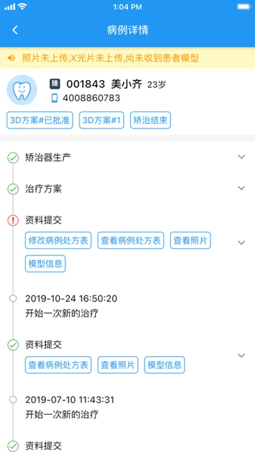 - 随时随地提交病例、跟踪病例状态、审核3D矫治方案