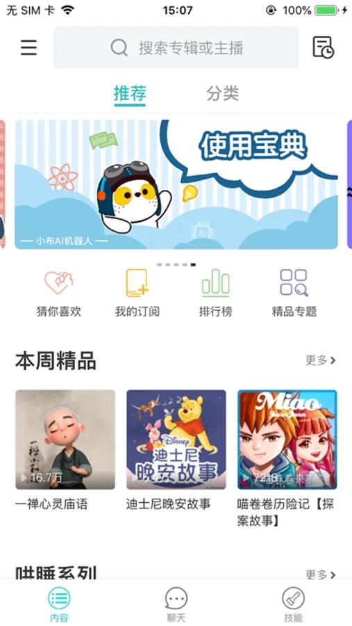 5、内容推荐:向用户推荐内容、技能及点播口令等;