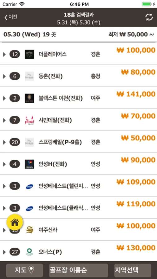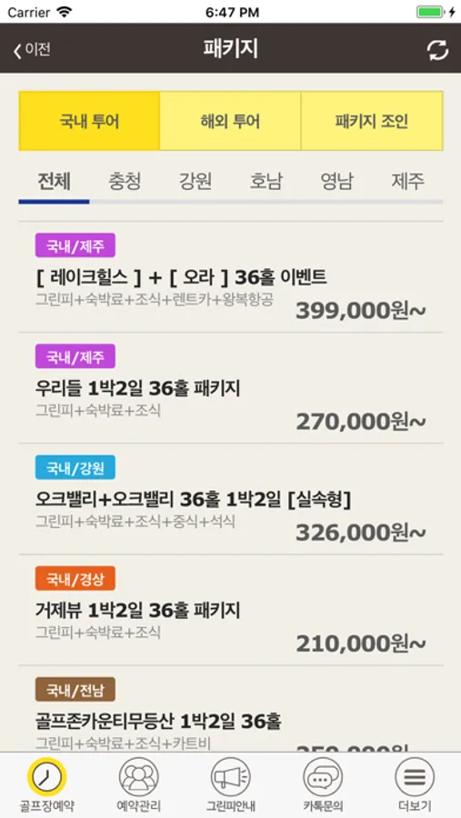 골프장의 실시간 부킹, 배스트상품, 국내 전 지역 골프패키지 운영등,