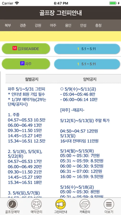 ` 수도권 골프장 실시간 예약 / 그린피안내 / 국내 해외 골프투어`