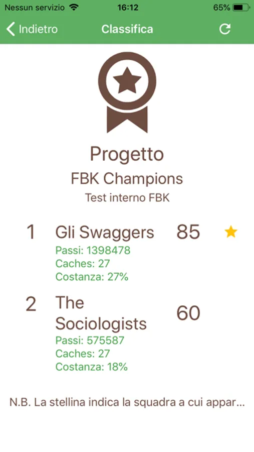 Facendo parte di un progetto FBK, i passi fatti vanno ad influenzare un punteggio attribuito alla propria squadra.