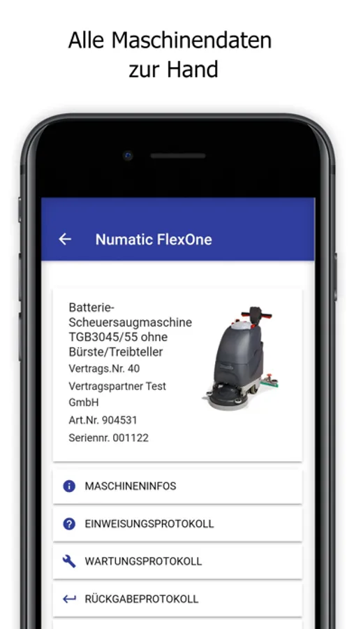 Per QR-Code oder noch schneller per NFC-Chip-Erkennung werden alle Maschinendaten in Numatic FlexOne aufgerufen