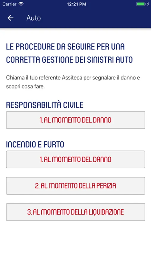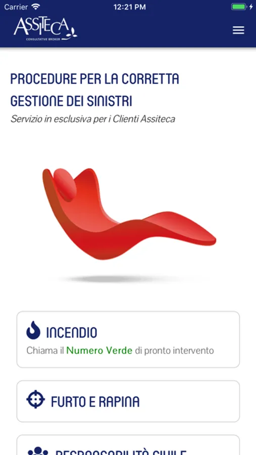 L’APP mette a disposizione anche una serie di manuali con le procedure da seguire per una corretta gestione del sinistro in ambito Incendio, Furto e rapina, Responsabilità Civile, Infortuni, RC Auto. Per ogni tipologia di sinistro vengono indicate le attività che l’azienda deve compiere: