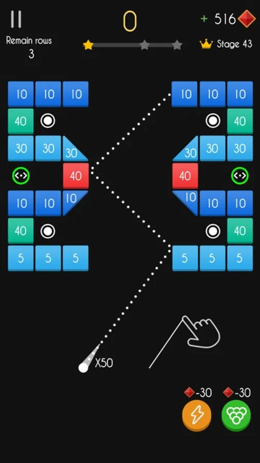 Hold the screen to aim, swipe the ball to the brick and break all the bricks easily!