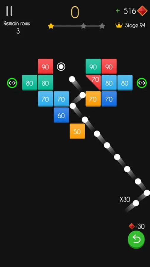 Shoot and watch the chain of balls hit, bounce and break the bricks.