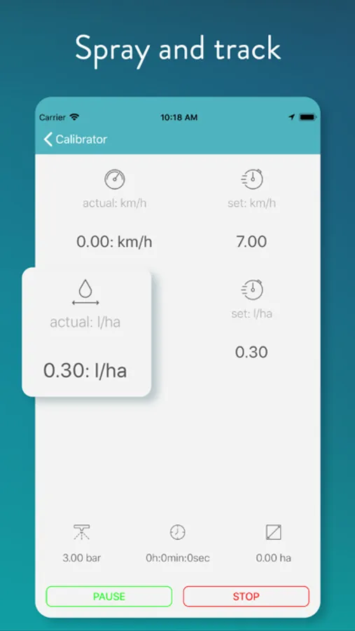 The app includes a feature that allows the user to quickly set a required pressure and speed of the tractor. Also, it's a great help when setting distance between nozzles or choosing them. Information like spraying per minute or in hectare / acre is easily obtainable.