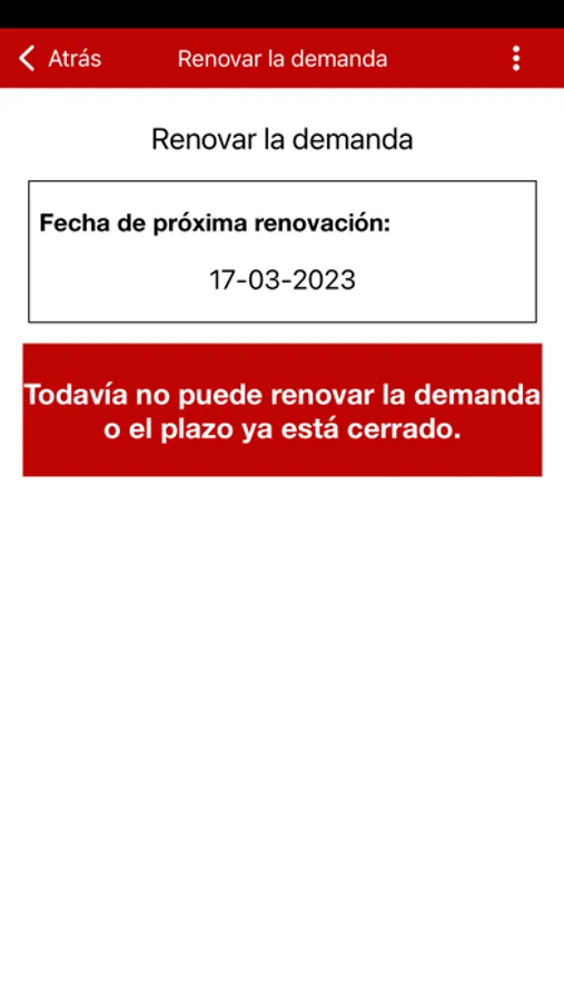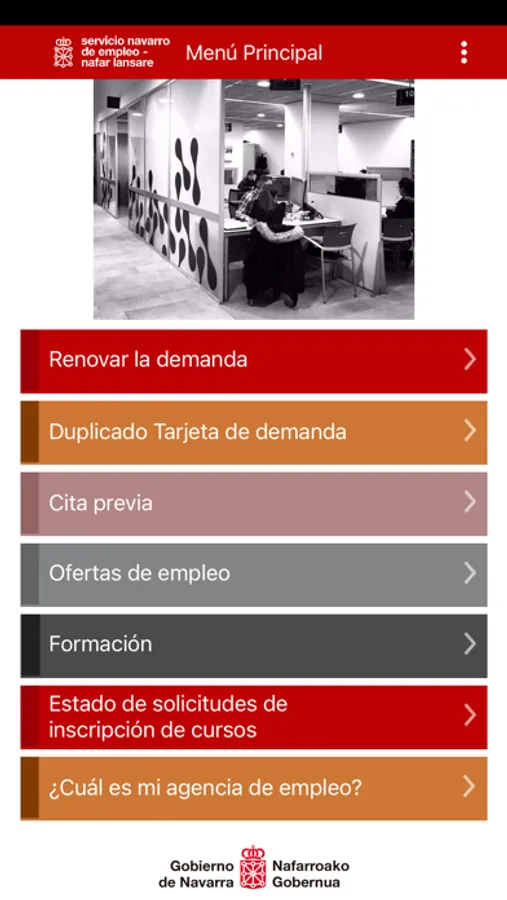 Esta app solo permite renovaciones de demanda de empleo activadas en Navarra y en situación de alta. No se pueden reactivar tarjetas en situación de baja o suspensión o con permisos de trabajo pendientes de renovación. En este caso, es preciso a la acudir a la agencia de empleo.