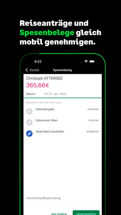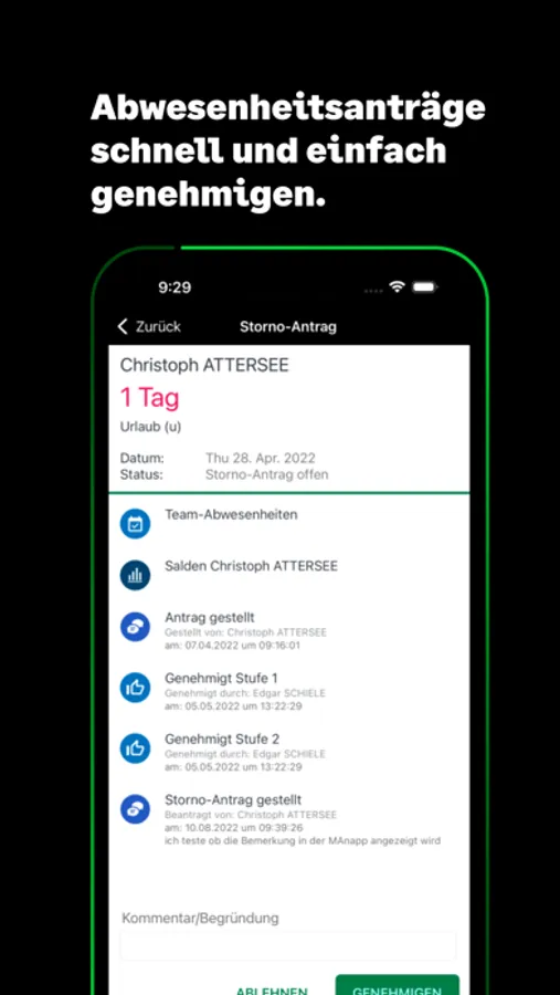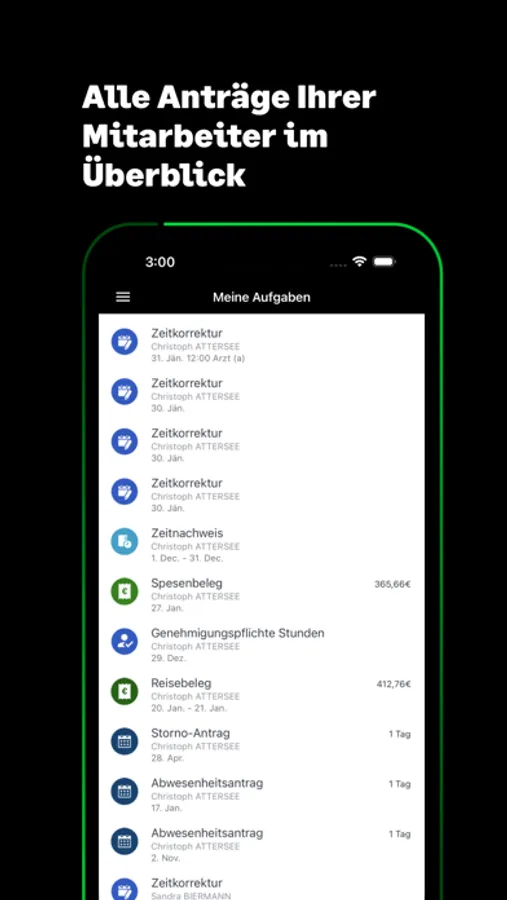 genehmigen – alles ganz einfach und schnell mit Ihrem iPhone. Eine übersichtliche Aufgabenliste zeigt die offenen To-dos. Über die Smartphone-Benachrichtigung werden Sie sofort über neue Anträge informiert.