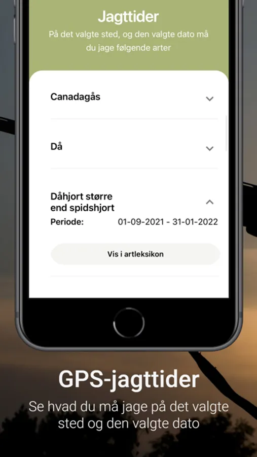 Få overblik over, hvilke arter du må jage på dit valgte sted og tidspunkt. Med appen Jæger har du altid adgang til en opdateret oversigt over både nationale og lokale jagttider.