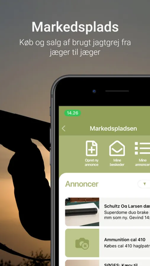Køb og sælg våben, hunde, tøj og andet brugt jagtudstyr. Handlerne foregår direkte fra jæger til jæger.