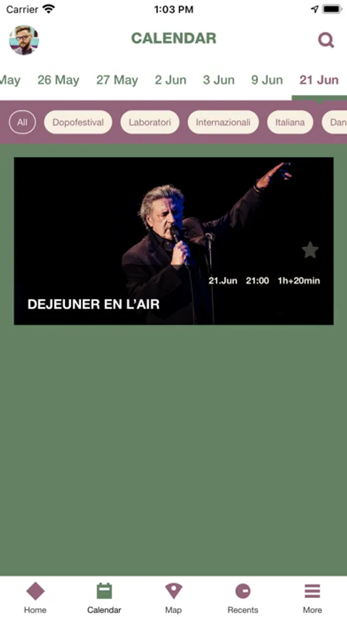 The daily calendar of the Festival will be always updated for each category so you can choose and read up on the events you are interested in. Through the App you can also book or buy the entrance ticket for each show.
